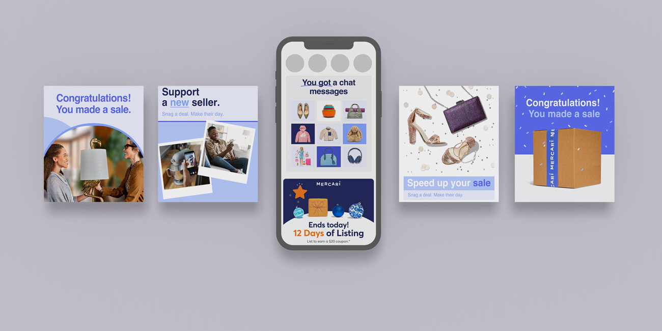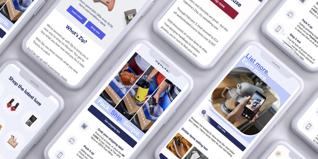 Creation of email campaigns, banners, and social media designs for the Mercari brand.