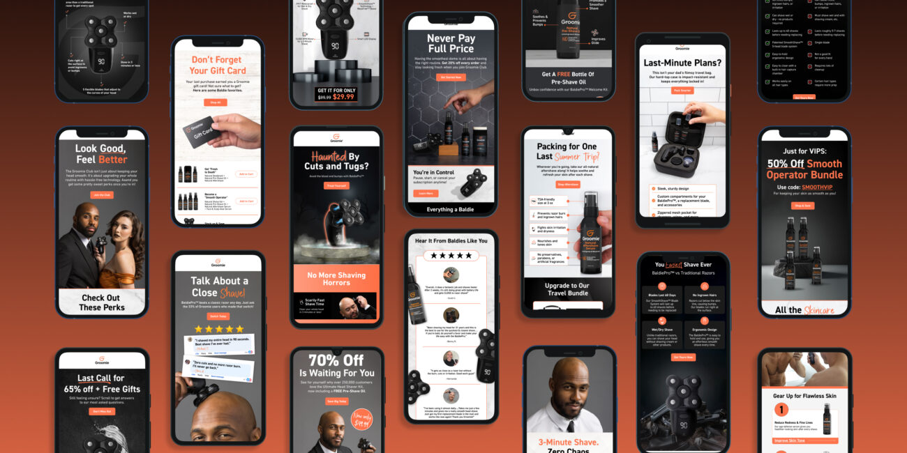 Creation of email campaigns, banners, and social media designs for the Groomie Club brand.